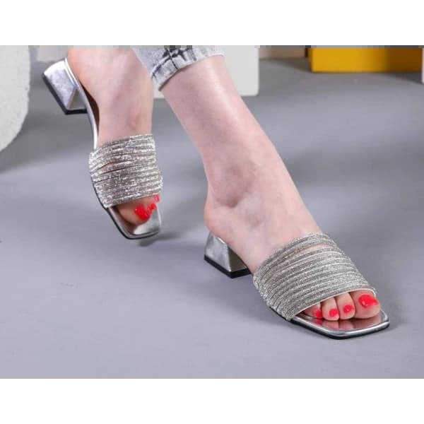 çekici, parlak, alçak topuklu terlikler - Çekici, parlak, alçak topuklu terlikler