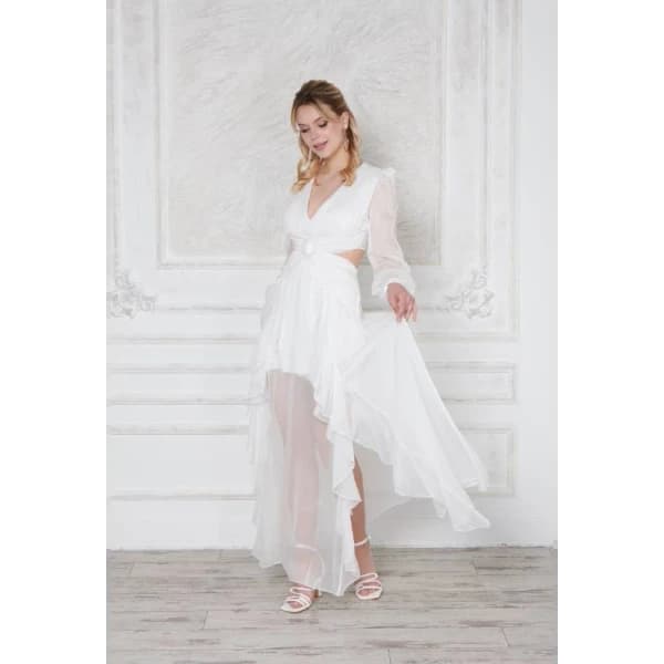 FIRFIRLI,DÜGMELİ JANJAN ŞİFON YIRTMAÇ DETAYLI ABİYE ELBİSEBEDEN: S/ MM/ LL/ XL60