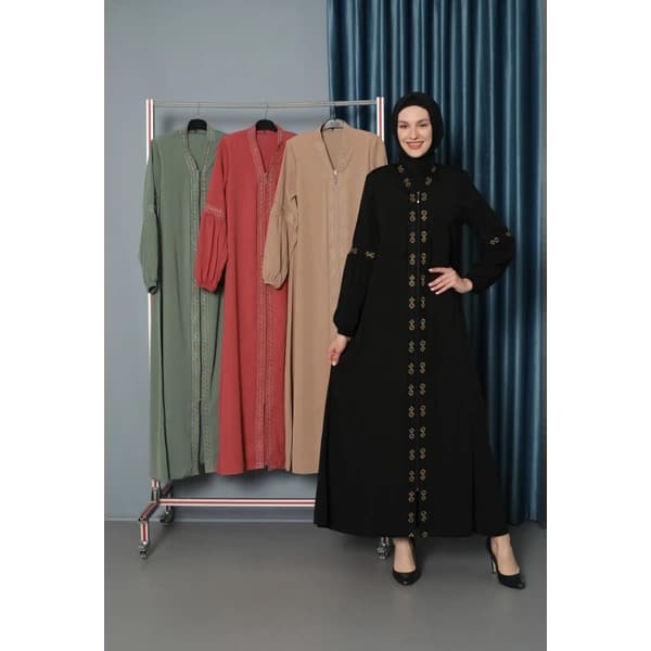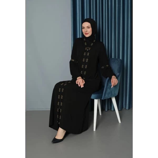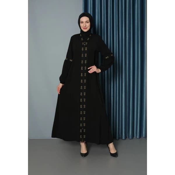 Pelerinli ve zam kollu, belirgin lazer elmas işlemeli 608 yazlık kadın feracesi