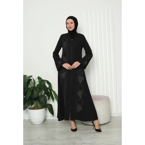 Pelerinli ve zam kollu, belirgin lazer elmas işlemeli 608 yazlık kadın feracesi