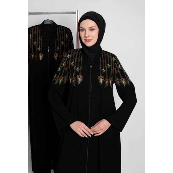 Pelerinli ve zam kollu, belirgin lazer elmas işlemeli 608 yazlık kadın feracesi