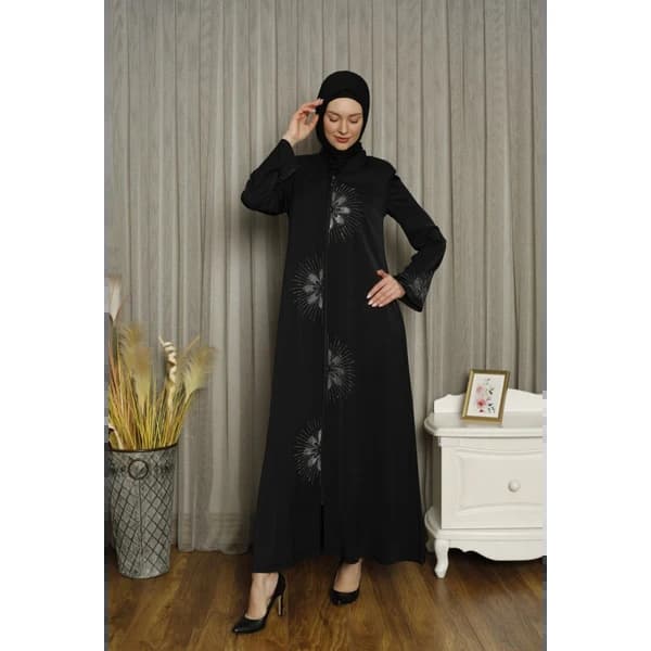 Pelerinli ve zam kollu, belirgin lazer elmas işlemeli 608 yazlık kadın feracesi