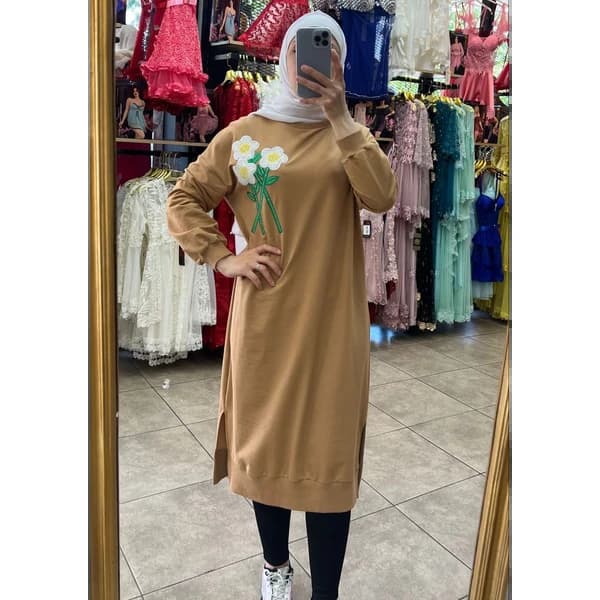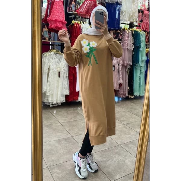 Kollarda ve yakada siyah litografi desenli şık penye pamuk
