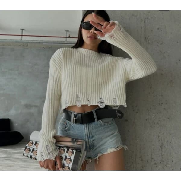 crop rtikli tri̇ko - CROP YIRTIKLI TRİKO TEK BEDEN