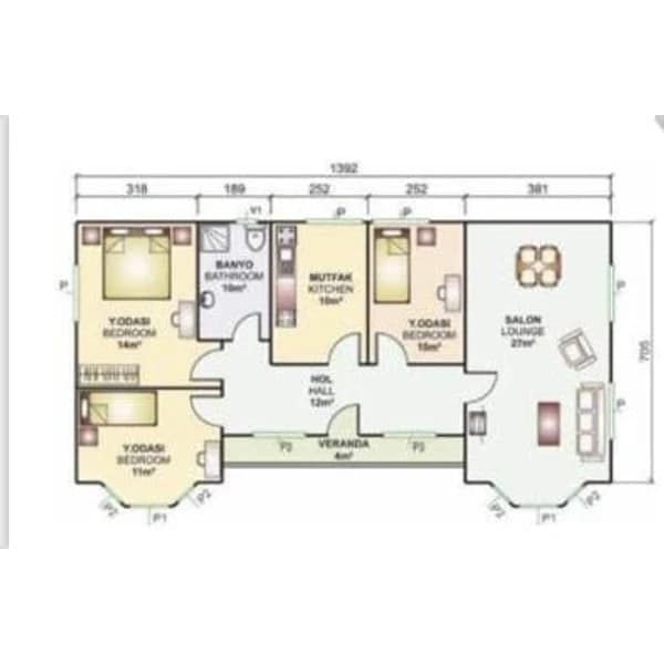 Müstakil ev, (2+1) düzenine sahiptir ve net iç kullanım alanı 102 m²'dir.