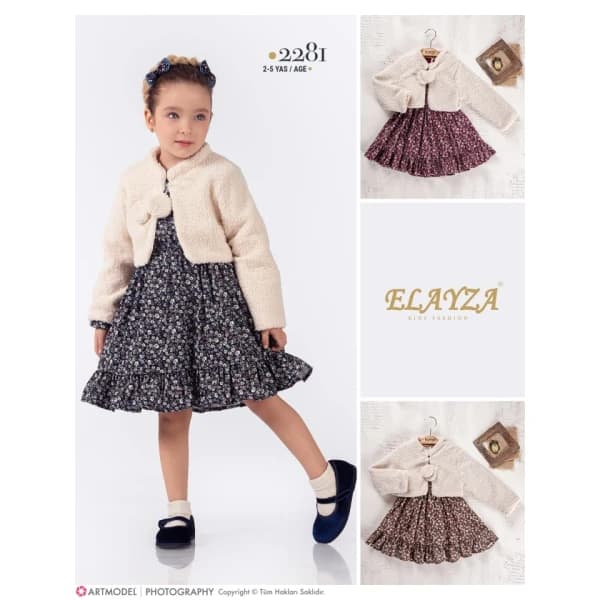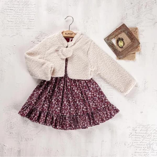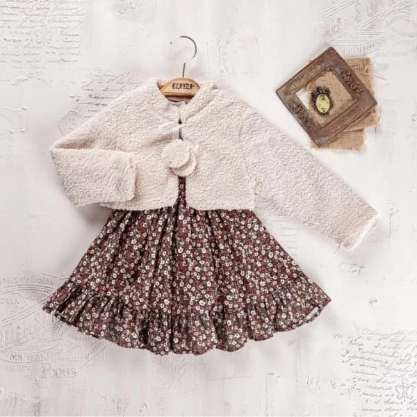 2-3-4-5 yaş bolerolu çi̇çek baskili kişlik kiz çocuk elbi̇sesi̇ - 2-3-4-5 YAŞ KIŞLIK KIZ ELBİSESİ