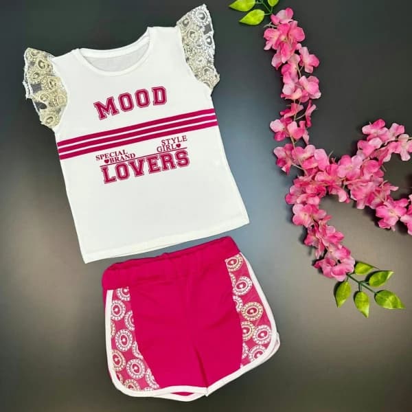 kız çocuk kitty desenli şort takımı - Kız çocuk kitty desenli şort takımı