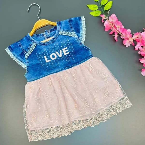 kız çocuk üstü kot altı pembe dantelli yazlık elbise - Kız Çocuk Üstü Kot Altı Pembe Dantelli Yazlık Elbise
