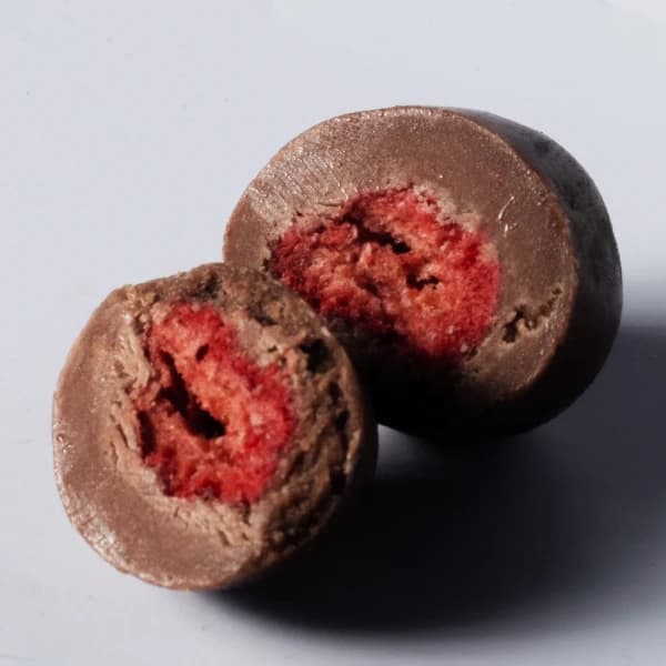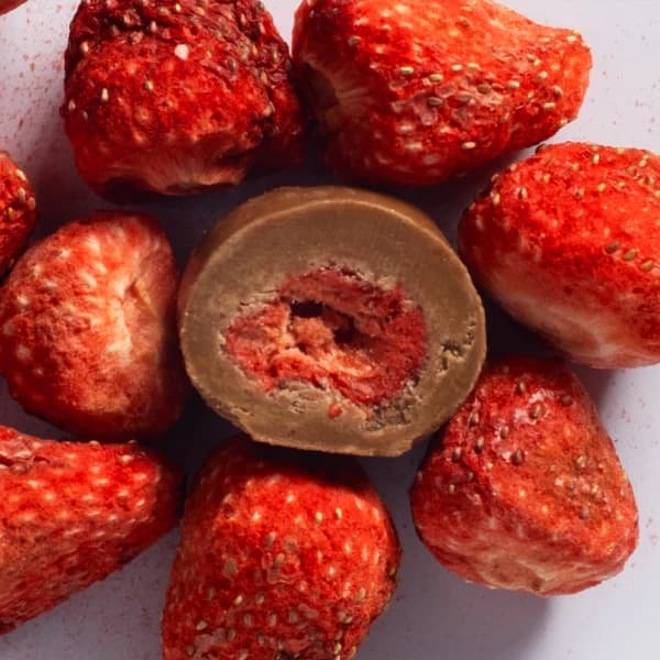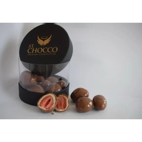 sütlü çi̇kolata kapli çi̇lek draje 200g - SÜTLÜ BELÇİKA ÇİKOLATA KAPLI FREEZE-DRY ÇİLEK DRAJE 200G