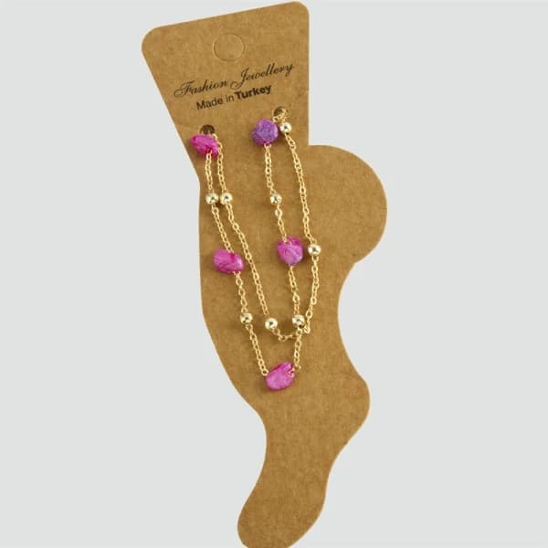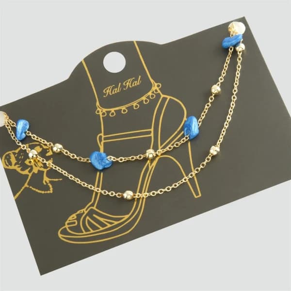 doğaltaş görünümlü mineli zincir halhal - Halhal; Ürün malzemesi mine boyama ve metaldir. Ürün boyu 22 cmdir. Kartıyla beraber gönderilecektir.