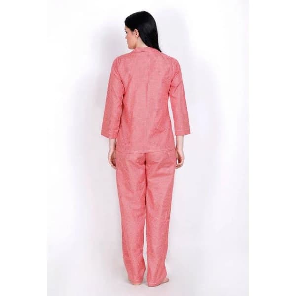 düğmeli kareli pijama takımı -