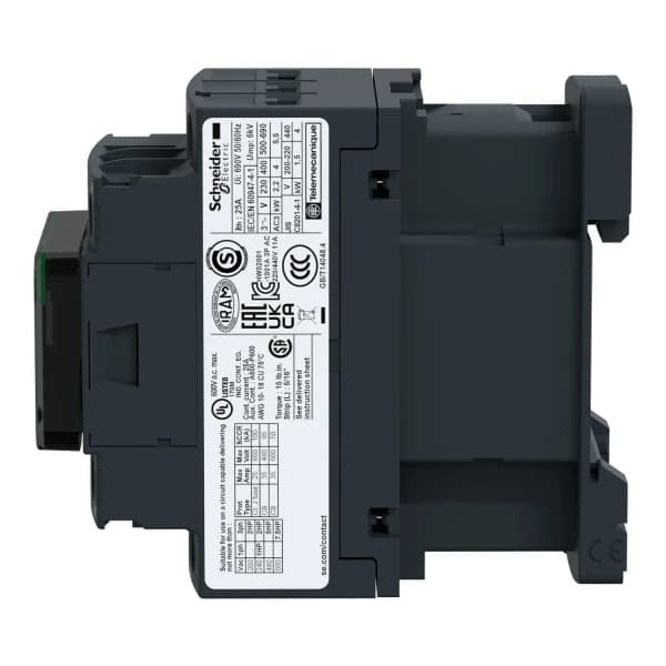 TeSys D kontaktör, 3 kutuplu (3NO), 12A/690V AC-3/3e'e (5 5kW@400V) kadar motor kontrol uygulamaları için 3600 devir/saat'e kadar çalışma derecesi ve 60°C'ye kadar olan ortamlarda yüksek güvenilirlik ve dayanıklılık sağlar Kompakt (45 mm genişlik), DIN rayına montaj veya vidayla sabitleme Multi standart sertifikalı (IEC, UL, CSA, CCC, EAC, Marine), Green Premium uyumlu (RoHS/REACh). Multi standart sertifikalı (IEC, UL, CSA, CCC, EAC, Marine), Green Premium uyumlu (RoHS/REACh)