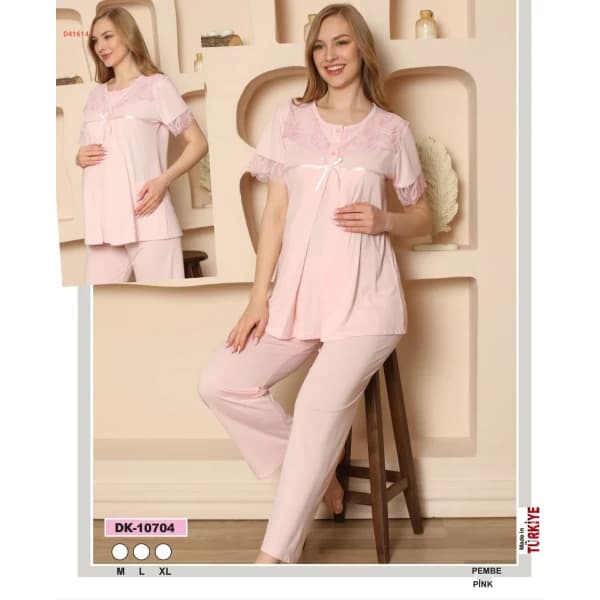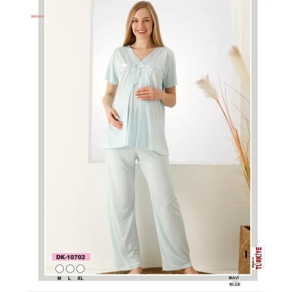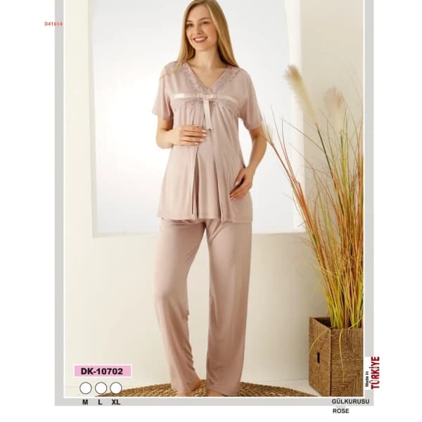 üç parçalı hamile pijamaları - Üç parçalı hamile kadın pijama takımı: 6