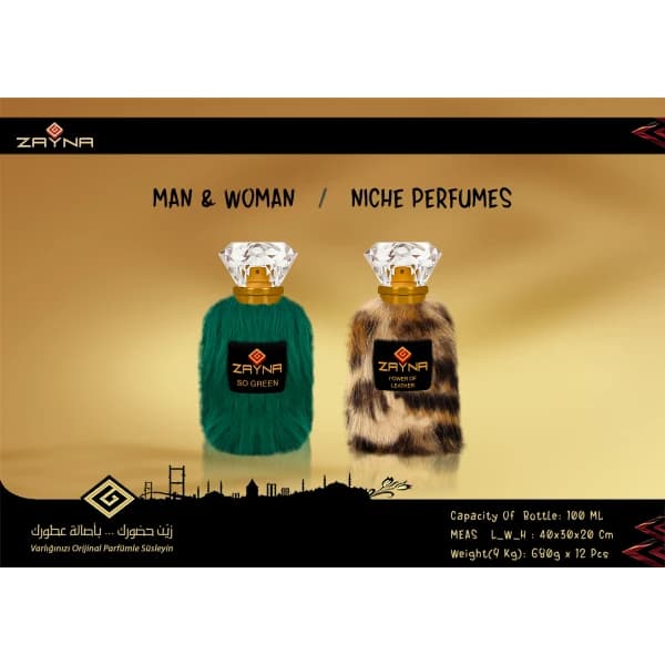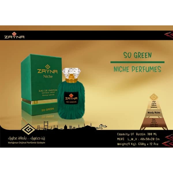 zayna so green 100 ml niş parfüm - Kürk kaplı, lüks kutulu özel Zayna şişesinde unisex parfüm